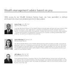 Your High Net Worth Planner of the Wealth Advisory Services team will work with you and your other
