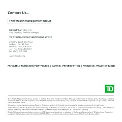 Thor Wealth Management Group consists of Michael Thor, Vice President, Portfolio Manager and Investment Advisor, Doug Thorhauge, Associate