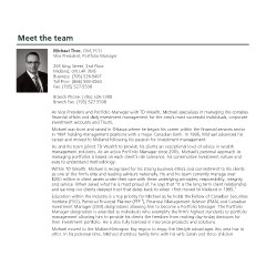 Within TD Wealth, Michael is recognized for his strong business ethics and commitment to his clients